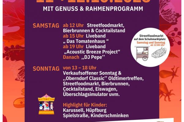 Das HGV Herbstfest 2025 steht wieder vor der Tür. Zwei Tage voller Kulinarik, umfangreichen Erlebnisprogramm und verkaufsoffenen Sonntag mit der Oberndorf Classic.